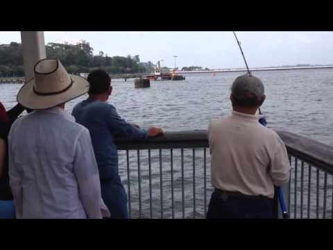 Big Catfish [Hexanematichthys], Seng Heurr 鲶鱼 [chinese] or Bulukang [malay] weighing 3kg plus had it revenge on Ah Wong at Woodland Jetty on 4th April 2013 who had drift his bread on float which are meant for mullet to Big Catfish [Hexanematichthys], Seng Heurr 鲶鱼 [chinese] or Bulukang [malay] main door. The Catfish had it revenge in disturb them by pulling his rod which fly into the sea lucky Ah Huat was there jigging for tamban help to retrieve his rod and Ah Lee was there with the rope gaff to help him land the fish good team work. Credit also go to Ah Tan who was there to shoot this nice video credit goes to three of them.